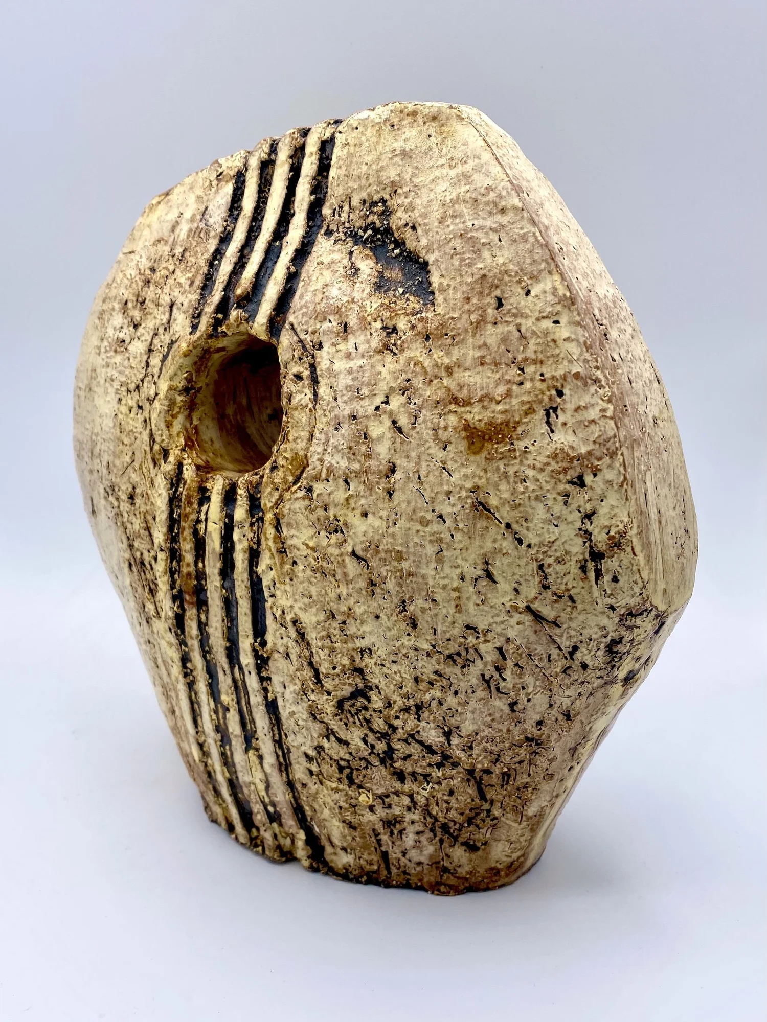 Stoneware w/ Volcanic Ash Glaze, Wood-fired, Cone 11, 3” x 4” x 3.25”, 2025